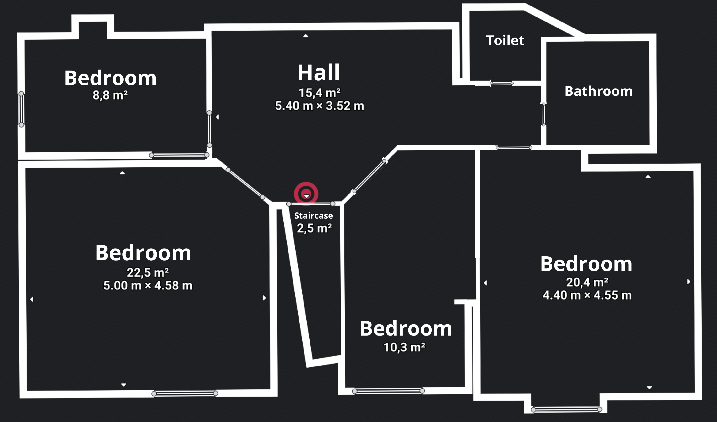 - Hall (potential entryway for the upper apartment)